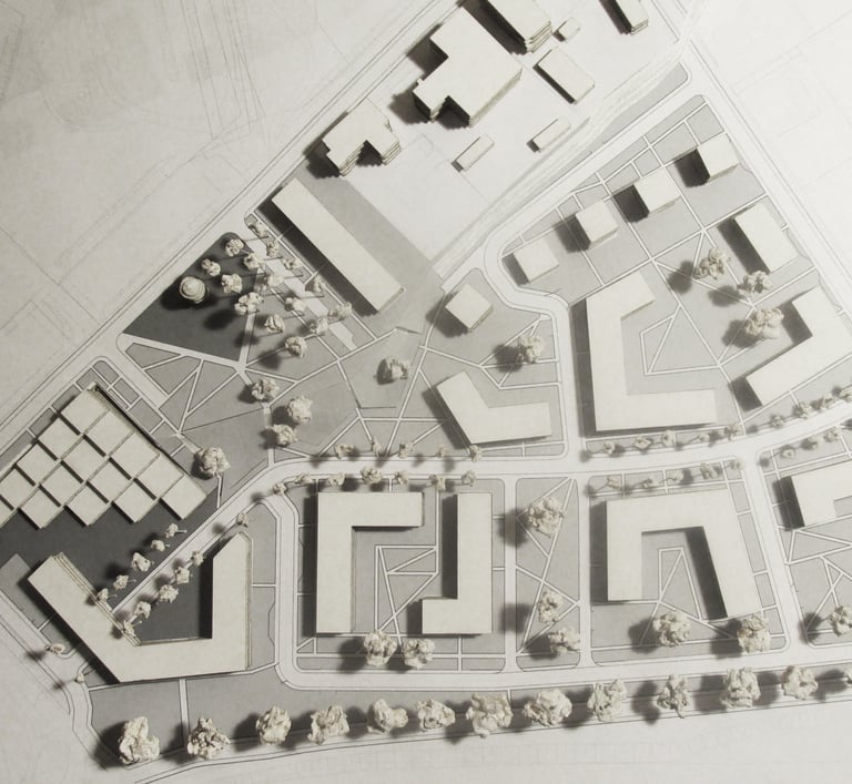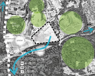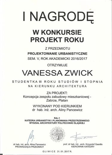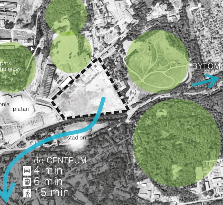 The design introduces a mix of housing, shops, and public squares, responding to the surrounding schools, hospitals, and established neighbourhoods. The project was awarded by Zabrze City Council in collaboration with Politechnika Śląska.
